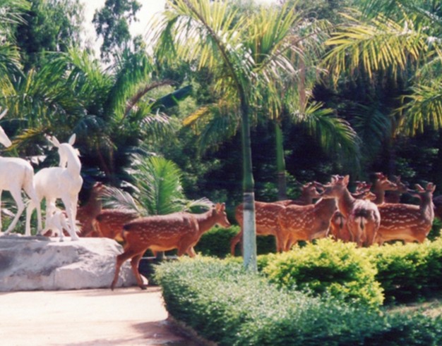 湛江金鹿園位于廣東湛江市湖光巖北側(cè)1公里處,占地近百畝,與湖光巖、南亞熱帶植物園共同構(gòu)成環(huán)湖生態(tài)旅游圈,附近空氣清新,既是湛江市理想的天然“氧吧”。也是華南地區(qū)最大的養(yǎng)鹿基地,是集生態(tài)旅游、購物休閑、科普教育于一體的景點(diǎn)。梅花鹿,毛色美麗,性情溫馴,極具觀賞性,是吉祥、幸福的代表物。金鹿園的梅花鹿是1972年從東北引進(jìn)的,經(jīng)過20多年的努力,已經(jīng)成功解決了北鹿南養(yǎng)的一系列技術(shù)難題,原先引進(jìn)的43頭種鹿已繁育出后代鹿1800多頭。