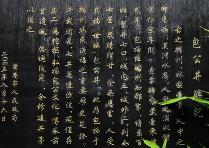 宋代名臣包拯,在肇慶任端州知郡事3年,為官清廉,大辦實事,造福端州。當(dāng)時居民因長年飲用不潔凈的水,瘟疫、疾病時有發(fā)生.包拯發(fā)動群眾在城區(qū)開挖水井七口,居民感激包公將這七口水井稱為包公井。肇慶的水井到了清末民初已數(shù)不勝數(shù),基本上所有街巷都有飲用水井.由于包公井年代久遠(yuǎn),七口井在何處,卻鮮為人知.
