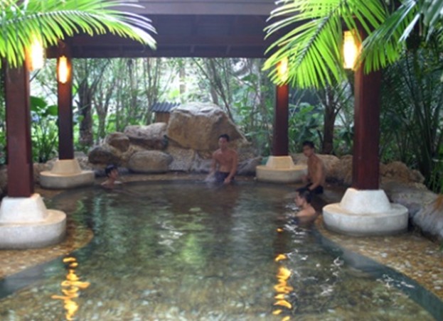 仙沐園被稱為“嶺南第一溫泉”,出水口溫度高達93攝氏度,含有20多種礦物質(zhì)和微量元素,共有特色溫泉38種,如“香薰冰泉按摩池”、“牛奶池”、“咖啡池”、“薄荷池”等,其中的中國首個“香薰溫泉礦砂島”采用的是優(yōu)質(zhì)礦物砂石,配以富含多種礦物質(zhì)的溫泉水,并加以名貴香薰油造成的。