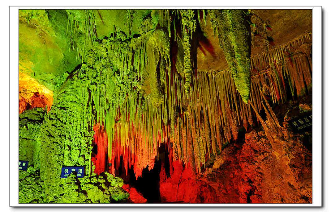 洞內(nèi)石花面積占到了所有化學(xué)沉積類型的60%以上,被中科院地質(zhì)研究所陳詩才教授稱之為“中國最大的石花洞穴”。各種石花以石珊瑚為基座,有針尖狀、球粒狀、葡萄狀、樹叢狀、蘑菇狀、菌塊狀、晶塊狀等,千姿百態(tài)、應(yīng)有盡有。其中大部分仍在生長中,質(zhì)地純凈、組合精巧、高貴細(xì)膩,在五顏六色的彩燈照耀下,仿佛一座正值盛期的天宮花園,美輪美奐。
