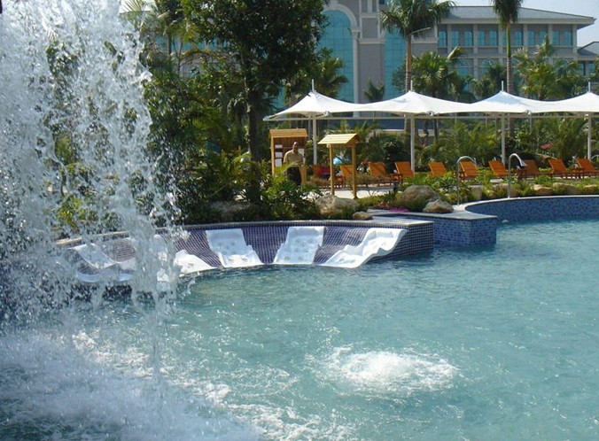 中山天和溫泉度假村 位于廣東省中山市國家級(jí)高新產(chǎn)業(yè)開發(fā)區(qū)——火炬開發(fā)區(qū)康樂大道,毗鄰中山港碼頭南側(cè),占地總面積約 15萬平方米,建筑面積達(dá)9.6萬平方米,現(xiàn)有客房327間(套);是一家按照國際四星級(jí)標(biāo)準(zhǔn)籌建的集溫泉、客房、餐飲、會(huì)議、娛樂為一體的全功能溫泉度假型酒店;度假村整體由露天深海溫泉區(qū)、溫泉?jiǎng)e墅群、假日酒店以及麗晶會(huì)娛樂城四大主題組成。