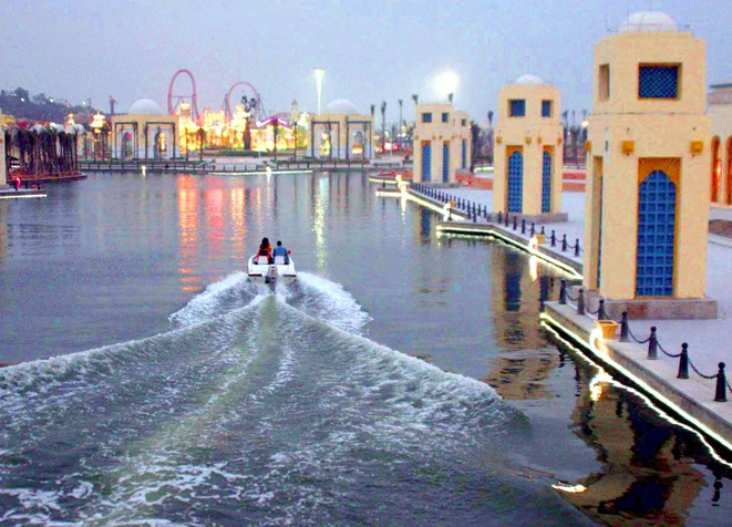 度假城里的神秘島主題樂園有目前世界上最新的傾斜塔、瘋狂松鼠、激流勇進、彈射式過山車等大型現(xiàn)代游樂設施,讓游客在互動中感受極限快樂。而依湖而建的漁人碼頭,設有大型水幕電影,40多艘游艇可在全園貫通的水面游弋,到達園區(qū)內任何一個景點。美食廣場、專賣店、酒吧、西餐廳在這里星羅棋布,充滿西方嘉年華氛圍。另外,度假城還擁有1200多個座位的高科技劇院,360度旋轉座椅使觀眾能盡情欣賞每晚上演的《海邊的夢》主題晚會。度假城中兩座摩洛哥皇宮風格的五星級酒店,由度假功能主樓、會議功能主樓、蜜月套房和溫泉別墅1000間自然客房組成,充滿濃郁的異國風情。
