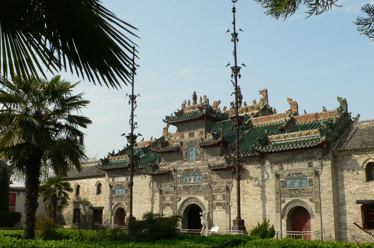 花戲樓有 “三絕”:正門前兩根旗桿,每根重6噸,高16余米,直插云霄,是為花戲樓一絕。旗桿分五節(jié),每節(jié)分鑄八卦蟠龍,頂端鑄丹鳳一只,造型生動,旗桿上還有三層方斗風(fēng)鈴24只,迎風(fēng)叮當(dāng)作響,清脆悅耳。 花戲樓的木雕是第二絕,共雕有三國戲文18出,人物數(shù)百個,神態(tài)各異,龍爭虎斗,呼之欲出。 花戲樓的第三絕在山門?;☉驑堑纳介T是一座仿木結(jié)構(gòu)的三層牌坊式建筑,上面鑲嵌著聞名天下的立體水磨磚雕,玲瓏剔透,琳瑯滿目。花戲樓的磚雕,屬徽派微雕藝術(shù),在不足5厘米厚的水磨青磚面上,共雕人物115人,禽鳥33只,走獸67只,樓臺殿閣多處,花草樹木無數(shù),內(nèi)容涉及到中國的宗教、歷史、政治、軍事、風(fēng)俗民情等諸多方面。版權(quán)所有山東聊城聊之旅國際旅行社有限公司,轉(zhuǎn)載必究!1988年1月國務(wù)院公布位全國重點文物保護單位。