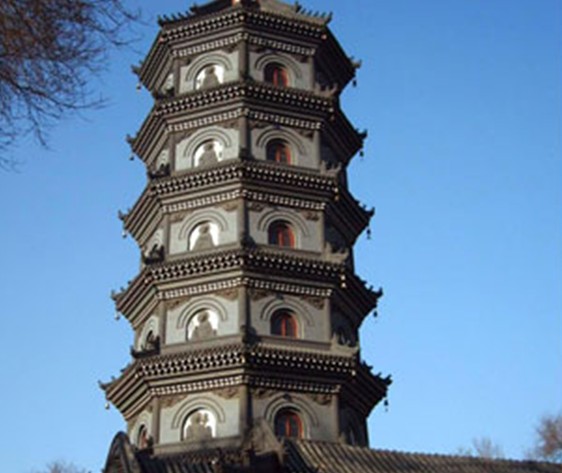 “浮屠”作為佛教徒膜拜的紀(jì)念物傳入中國(guó),它的形狀很快被融化、改造。早在漢朝這種形象就已有了原型,既多層樓閣,這種中國(guó)固有的樓閣與印度傳入的“浮屠”相結(jié)合,便產(chǎn)生了中國(guó)形式的佛塔。多層樓閣在下,樓閣頂上置放“浮屠”形式的屋頂,稱為剎頂。于是,一種新的建筑樣式出現(xiàn)了。佛塔作為安放佛骨舍利的紀(jì)念物,起初是建立在寺院的中心位置,供佛徒頂禮膜拜。隨著佛像的出現(xiàn),供奉佛像的大殿逐漸替代了塔的中心位置。以后寺廟的建筑,佛塔被移至大殿之后,或者放在大殿中軸邊的院落里。塔形體高大,具有宣揚(yáng)和招徠的作用,因此,它成為佛教建筑中必不可少的標(biāo)志性建筑。
