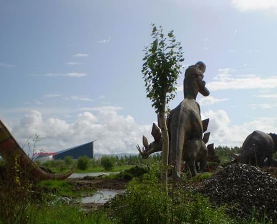 中國第一塊恐龍化石的發(fā)生地——嘉蔭恐龍國家地質公園“因龍而名”。從這里出土的化石,已 經被裝成了10具恐龍化石骨架。兩年前,多國古生物學家和地質學家在嘉蔭野外考察時,發(fā)現了新的大 規(guī)??铸埢海鬃忑?、虛骨龍外,還發(fā)現了甲龍化石、恐龍被皮膚化石和恐龍腳印化石,使“恐龍之鄉(xiāng)”的名聲更加遠場。