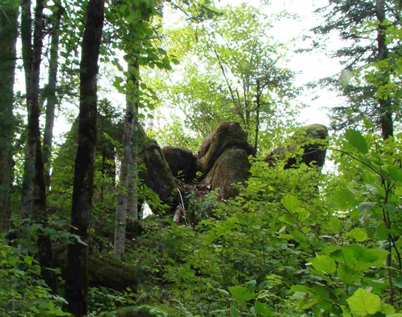 位于距市區(qū)7公里處。在一片密林中,有一簇平地拔地而起,以一塊塊花崗巖巨石砌成的石峰,高大雄偉,其形似柱,稱謂石林。石林由六座石峰組成,南二北四。北面四座一字梯形排列,一高近丈,二高近二丈,三高平二丈,四高一丈半。二峰端長有蒼松一株,似示最高。各峰成形惟妙,二三座石峰間相距極狹,僅尺許,縫如刀切,稱“一線天”。在第四座石峰南5米處,還有兩座石峰,相距不足1米,微低。遠望,形如雄師臥地,前身支起而后身匍匐,似忠誠的護林衛(wèi)士。第二叢樹林,在第一叢以東偏南,相距約百米。由三座石峰構(gòu)成,北二南一。北西兩座甚是匹配,高九仞余,其中一座有三個峰端,有護林人“家業(yè)興旺”之寓。沿三峰石南側(cè)攀緣而上,至高6米處,鉆過兩塊大石堆成的石門,便到了石峰東側(cè)的平臺,臺成弧狀,可納十余人。臺下是陡峭絕壁,其險令人目眩。臺之對面,有一塊呈圓鼓狀、低于平臺1米之大石,可容四人并坐,版權(quán)所有山東聊城聊之旅國際旅行社有限公司,轉(zhuǎn)載必究!其底部與三峰石相連,有狹道與平臺相通。登石眺望,可觀得西南方向約20米處的丈余高之石峰,似一擎天巨柱……石林,仿佛小興安嶺建設(shè)者之雄資,在廣袤密林中,手捧奇花異草,伴著山間小溪流水淙淙,迎候著遠方的客人。