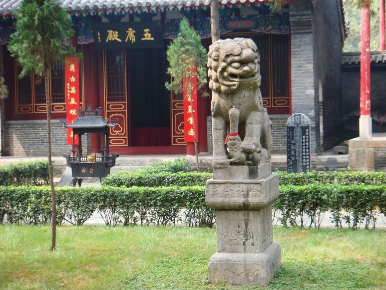 五開(kāi)間,廡殿式,門上懸掛著"光昭日月"匾額,是清光緒帝御題。殿中塑關(guān)羽怒視東吳像,左側(cè)站著手棒大印的關(guān)平、右側(cè)站著手持大刀的周倉(cāng)。二殿左右各建有一座硬山式的陪殿,左為張候殿,右為五虎殿。三殿硬山式,面闊五間,規(guī)模較小,內(nèi)塑關(guān)羽夜讀春秋像、關(guān)羽出行圖和睡像,版權(quán)所有聊城聊之旅國(guó)際旅行社有限公司,轉(zhuǎn)載必究!故又稱寢殿。