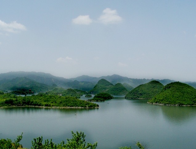 百花湖畔,清鎮(zhèn)市第二高峰云歸山,自東向西環(huán)抱鄉(xiāng)境,支脈延伸,千姿百態(tài),青翠秀麗。丘陵、槽谷、山地、水域連為一體,形成一個(gè)生態(tài)大板塊。云歸山居清鎮(zhèn)市八景之首,“爐嶺歸云”高聳入云,極目百里,昕夕云集。云歸林區(qū)、九里箐,方圓七十余里,原生植被,物種繁多,森林茂密,鳥語(yǔ)花香,山谷幽深,清泉汩汩。石操、上麥城、下麥城、溫水、哪嘎、盤龍洞等林場(chǎng)構(gòu)成道道生態(tài)屏障。為打造“森林生態(tài)”文化,相繼實(shí)施長(zhǎng)江防護(hù)林、天然林資源保護(hù)、退耕還林還草、沿湖綠化工程,森林面積從“九五”末的8.89萬(wàn)畝增加到2006年的9.63萬(wàn)畝,森林覆蓋率提高到60%。林密、地綠、山青、水秀使百花湖鄉(xiāng)成為名副其實(shí)的避暑勝地、“天然大氧吧”。綠色農(nóng)業(yè)、生態(tài)農(nóng)業(yè)成為調(diào)整產(chǎn)業(yè)結(jié)構(gòu)的主攻方向,十里杜鵑、十里櫻桃、百畝李子、千畝高產(chǎn)油菜、百畝烤煙、百萬(wàn)只肉雞飼養(yǎng)、無(wú)公害茶樹菇等基地初見(jiàn)成效,促進(jìn)了農(nóng)民增收,版權(quán)所有山東聊城聊之旅國(guó)際旅行社有限公司,轉(zhuǎn)載必究!2006年農(nóng)民人均純收入2877元。蘿卜、云歸、三屯一帶十里峽谷盛產(chǎn)櫻桃,杜鵑遍山,獨(dú)具“春到三月意更濃,云歸十里櫻桃紅。杜鵑滿山織云錦,農(nóng)家年年坐春風(fēng)”的詩(shī)情畫意。“品云歸櫻桃,賞十里杜鵑、烤百花鮮魚”,是百花湖旅游的獨(dú)特享受。境內(nèi)三季有果、四季有花,生機(jī)盎然,漫步山間田野,賞花品果,其樂(lè)無(wú)窮。 百花湖鄉(xiāng)境內(nèi)河流眾多,水資源豐富。上世紀(jì)60年代因建百花電站形成的百花湖,與紅楓湖并稱“姊妹明珠”。蓄水2.1億立方米,水面14.5平方公里,92%在百花鄉(xiāng)境內(nèi)。如今湖面如鏡、影映青山、振翅小島、層層梯田、點(diǎn)點(diǎn)農(nóng)舍、縷縷炊煙,一派田園風(fēng)光,成為休閑避暑、度假觀光的旅游勝地。百余個(gè)峰叢島嶼靜臥水中,迎客松、石鏈鎖猴、青蛙聽(tīng)濤、小三峽、嬌燕戲水、八仙過(guò)海、筆峰疊翠等自然景觀千姿百態(tài)。百花湖沿岸,三屯五堡之間,百花山莊、百花游樂(lè)園、明月樓、觀云樓、靈達(dá)度假村、星苑等一幢幢旅游建筑拔地而起,集會(huì)議、休閑、餐飲、娛樂(lè)、觀光為一體。著名作家金庸星苑登樓觀景,欣然贊曰“如此湖山天下無(wú),天然勝景百花湖”。