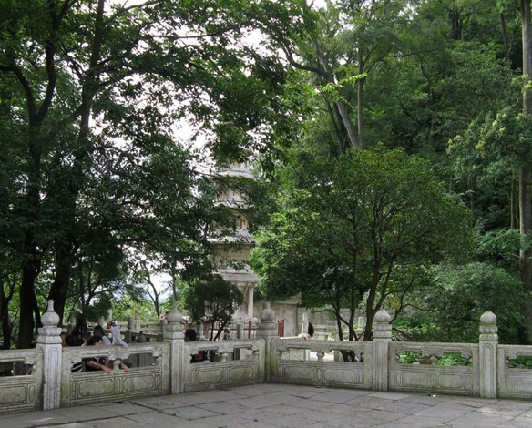 大殿后有一高臺(tái),前立二碑,乃朱德、董必武游黔靈山詩碑,碑后石壁嵌有多塊鐫刻,撰者為乾隆初年云貴總督吳達(dá)菩、貴門州巡撫劉藻、赤松和尚等。弘福寺不僅殿樓林立,還間有“風(fēng)尺亭”畫廊、“月明池”、“生生泉”“望城臺(tái)”等。寺后毗盧峰下有塔林,為弘福寺歷代祖師及僧人、居士之靈骨安藏處,有名可考者計(jì)有赤松、瞿脈、參之、惺慧、光燦、弗云、湛然、柏青、心月、智明、慈云、覺崇。