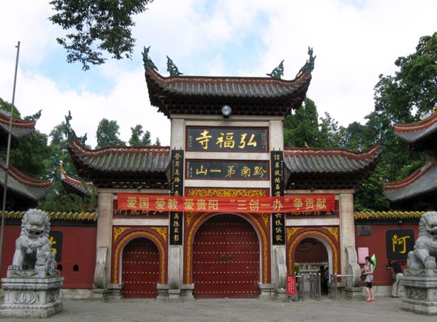 弘福寺位于貴陽市黔靈山群峰中心,距城約1。5公里,是十方叢林,為貴州首剎,向有“黔南第一山”之稱。弘福寺于1672年(清康熙11年)由赤松和尚開創(chuàng),“弘福”二字乃“弘佛大愿,救人救世;福我眾生,善始善終之意。赤松是為本寺開山始祖,佛法為臨濟(jì)一系之正宗,乃禪門五宗之一。