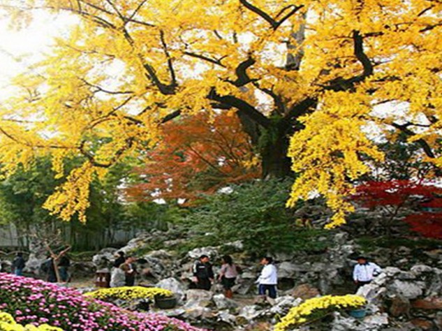 盤縣古銀杏風(fēng)景名勝區(qū)位于安順盤縣城關(guān)鎮(zhèn)35公里之石橋鎮(zhèn)妥樂村,該景區(qū)面積約146平方公里,包括石橋樂民鎮(zhèn)景區(qū)、水塘鎮(zhèn)景區(qū)、城關(guān)景區(qū)、火鋪鎮(zhèn)景區(qū)。景區(qū)內(nèi)生長著上千株古銀杏樹,最小的有300多歲,年長的達上千歲。專家認為,如此集中連片且與村寨融為一體的古銀杏群落,在世界上十分罕見。當(dāng)?shù)卣媱潪榇松陥笊虾4笫澜缂崴褂涗?。貴州省已經(jīng)把盤縣古銀杏風(fēng)景名勝區(qū)列為省級風(fēng)景區(qū)。銀杏樹是3000萬年前地球遺留下來的古植物, 人稱“活化石”,銀杏樹的樹形、葉片奇特、精巧, 四季分明,春天青翠,秋天金黃,其果實“白果’’可以入藥,是不可多得的觀賞樹種。盤縣古銀杏風(fēng)景名勝區(qū)內(nèi)的銀杏樹極其獨特。從小徑、田埂、屋基下、石階上,向四面八方伸展出來,把整個妥樂村托在了樹根之上。夏日里層層疊疊的綠葉現(xiàn)在全變成了金黃色,落葉鋪滿了石板小徑、黑瓦的房屋、收獲后的稻田……就連村中清澈透明的小溪、溪上的小石橋,也被扇形的銀杏葉裝點成了金色。據(jù)介紹,出售銀杏果實,是這當(dāng)?shù)卮迕竦闹饕?jīng)濟來源之一,因而村民們對古銀杏樹倍加愛惜。銀杏全身是寶,版權(quán)所有山東聊城聊之旅國際旅行社有限公司,轉(zhuǎn)載必究!果仁稱“白果”,是珍貴的藥物和不可多得的保健佐食佳品。從銀杏葉中能提煉出治療心血管病的藥物。當(dāng)?shù)卮謇锶硕嚅L壽,平均壽命70至80歲。景區(qū)內(nèi)妥樂村最長壽的老人106歲,面色紅潤,每天喝二兩酒,每頓吃2碗米飯、一碗肉、兩個土豆。為了改善古銀杏樹的生態(tài)環(huán)境,當(dāng)?shù)卣媱澃岢龃蠹s三分之二的村民,只保留古樸的木瓦房和少量村民。希望這個自然界留給人們的奇特村莊可以一直留存下去,為游人和當(dāng)?shù)厝藥ソo多的享受。