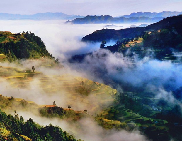 雷公山位于貴州省黔東南州東南部,海拔2178.8米,主峰距雷山縣城28公里,區(qū)內(nèi)生物資源豐富,生態(tài)優(yōu)美。各類生物近2000余種,列入國家保護(hù)的珍稀、瀕危動植物43種,尤其是“活化石”植物-禿杉,是中國特有一類保護(hù)樹種,且是全國面積最大,數(shù)量最多,保存最完整,原生性最強的一處,是中亞熱帶唯一的天然禿杉研究基地。雷公山巍峨挺撥,雄偉壯觀,森林蒼翠,溪水晶亮透明,瀑布垂直飛瀉,氣勢奪人,處處鳥語花香。在紅、白、紫玉蘭、杜鵑盛開的時節(jié),美不勝收。山下,到處分布著半坡苗寨,可領(lǐng)略迷人的苗族風(fēng)情,主峰觀日出日落,云吞霧繞,如詩如畫,令人心曠神怡。響水巖景區(qū):景區(qū)內(nèi)原始森林茂密,四季百花爭妍,投身其中,版權(quán)所有山東聊城聊之旅國際旅行社有限公司,轉(zhuǎn)載必究!宛若蕩漾在花的海洋。內(nèi)建有電站、水庫、賓館,基礎(chǔ)設(shè)施完善。景區(qū)旅游,一可登爬1983級臺階,感受山這巍峨;二可欣賞響水巖五級瀑布;三可沿途考察原始森林植被和苗寨風(fēng)情。