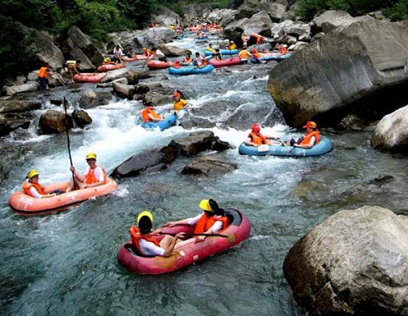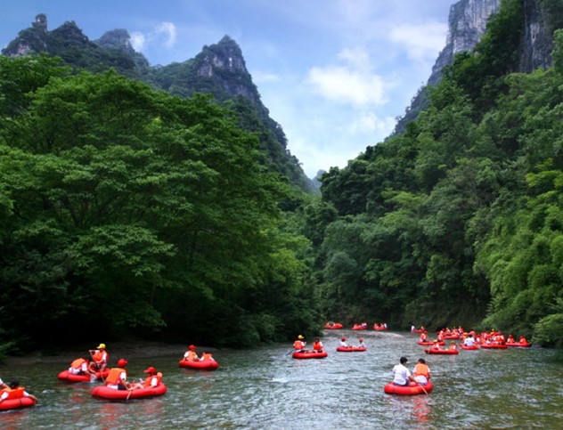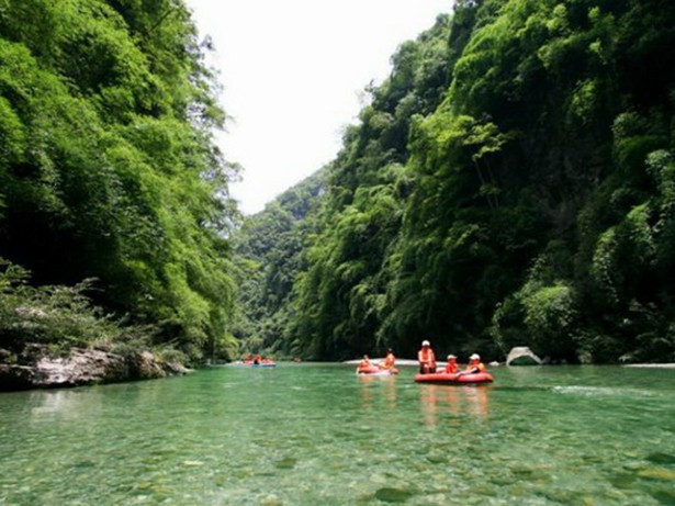 杉木河兩岸,山巖形狀多樣。在杉木河峽谷中漂流的人們便來(lái)了擬物象形的興致,每每見(jiàn)到凌空而架、造型獨(dú)特的一個(gè)天然石拱,學(xué)生物學(xué)的叫它“尺蠖洞”,好老莊的叫它“迎仙洞”,搞地質(zhì)研究的叫它“天生橋”;見(jiàn)到崖畔上陡大的石柱,有航海經(jīng)歷的稱其為“林海燈塔”,學(xué)歷史的稱其為“烽臺(tái)”。總之,每一景致都引來(lái)千般說(shuō)道,樂(lè)山樂(lè)水,見(jiàn)仁見(jiàn)智,真?zhèn)€是莫衷一是。杉木河床為卵石細(xì)沙鋪地,流水晶洼碧透,順著寬綽的河道款款流淌。沿途云飄山際,鷺?biāo)奚持?,魚(yú)翔淺底,蟬鳴林梢,奇草溢芳,整個(gè)環(huán)境幽而不險(xiǎn),郁而不閉。倘若有七八十歲的老翁老嫗乘上橡皮舟,只要有船工撐篙定可安然漂流而下;而逞能的姑娘在過(guò)灘時(shí)如被飛濺的浪花嚇得掉入水中,即刻就會(huì)有健壯的手臂向她揮來(lái)——當(dāng)然這并不排除同舟的小伙子惡作劇,創(chuàng)造“英雄救美”機(jī)會(huì)的可能。其實(shí)遇到此種情形即使落下河喝上幾口水也井非壞事,當(dāng)自己掙扎著站穩(wěn)腳跟就會(huì)發(fā)現(xiàn)河水正泠泠地從大腿間流過(guò),瞧那水要多清有多清要多純凈有多純凈,絕無(wú)任何污染。版權(quán)所有山東聊城聊之旅國(guó)際旅行社有限公司,轉(zhuǎn)載必究!何況還會(huì)從虛驚中多了一分體驗(yàn)一分得意,難怪一位游客要戲稱“不到浪中翻個(gè)滾,哪知杉水是甜泉”。誰(shuí)要有興趣就停船登岸,到山中采來(lái)竹筍,下水中捕捉魚(yú)蝦螃蟹,搭起帳篷點(diǎn)燃篝火,入夜后伴以流水蛙鳴,舉杯同邀倩風(fēng)明月,享大自然寬厚、質(zhì)樸、醇美的恩賜。這對(duì)于飽受城市喧囂和環(huán)境污染之苦的人來(lái)說(shuō),簡(jiǎn)直是一方勝境。在2009年由《行游天下》雜志社、搜狐旅游、中國(guó)旅游胡同社區(qū)等媒體聯(lián)合推出的“中國(guó)最美旅游勝地排行榜”評(píng)選活動(dòng)中,杉木河漂流入選中國(guó)最驚險(xiǎn)刺激的六大漂流勝地。