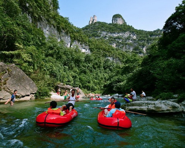 杉木河在貴州省黔東南自治州施秉縣的崇山峻嶺中,流淌了億萬(wàn)斯年,卻一直名不見(jiàn)經(jīng)傳。若論流量,這條河常年充其量不過(guò)4.2立方米/秒,與大江大河的大開(kāi)大闔、波瀾壯闊簡(jiǎn)直無(wú)法相比。經(jīng)過(guò)開(kāi)發(fā),杉木河自助漂流成為生態(tài)環(huán)境游的熱點(diǎn),還因其柔美被稱為“親情河,友情河,愛(ài)情河”,其因水質(zhì)清純、有驚無(wú)險(xiǎn)自助漂而被譽(yù)為“礦泉河”。