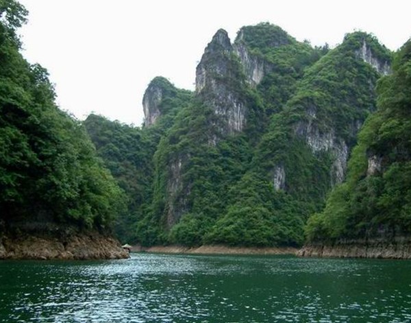 景區(qū)以高峽平湖、瀑泉飛流、喀斯特為主體;山色水韻風(fēng)光迷人。“破鏡重圓”半含水中半露崢嶸;鴛鴦夫妻結(jié)隊(duì)?wèi)蛩樯钜鉂?;奇妙的三疊水、珠落玉盤直瀉深潭;喊泉神靈有喊必應(yīng),呼之水出、止呼水隱;石峰神形如“孔雀開屏 ”、形態(tài)逼真;“大圣師徒”前往探幽,忙里偷閑,整個(gè)景區(qū)一灣一畫,一步一景,令游人忘返流連......。神秘的下舞陽,不是天堂勝似天堂。鮮明的個(gè)性特征之所撼動人心,主要在于下舞陽具有長江三峽之雄;蜀地蛾眉之秀;桂林漓江之美;陽朔勝景之幽而名冠天下。凡游覽過下舞陽的客人,無不恭維贊譽(yù)其幽谷、山色、水景為天下絕色、嘆為觀止。清代愛國將領(lǐng)林則徐曾在此留下著名詩章: