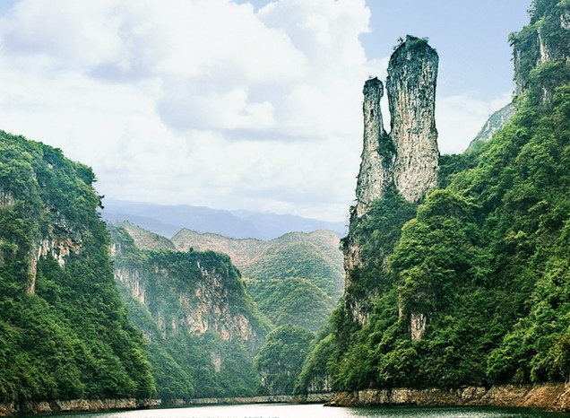 施秉上舞陽河景區(qū),位于貴州省黔東南自治州施秉縣西北部,距縣城8公里,規(guī)劃面積81平方公里,游覽景點(diǎn)27處。景區(qū)自然生態(tài)稱絕于世,原始植被郁郁蔥蔥,兩岸奇峰怪狀萬千;“姜太公釣魚”老態(tài)龍鐘;“仙人曬鞋”、 “一足撐天”,個(gè)性特別;“宮門雙厥”龍王神針天下一絕;“人面獅身”、“八仙過海”、“金猴望月”游人目不暇接;......27個(gè)景點(diǎn)像27顆翡翠明珠,鑲嵌于上舞陽河兩岸,青翠欲滴倒影漣漣,如天然盆景、如瑤池再現(xiàn)。整個(gè)景區(qū)層次分明、對比強(qiáng)烈、濃淡相間、疏密有序,構(gòu)成一副天然綠色藝術(shù)長廊。景區(qū)上段以雄奇見長;中段舒緩平展;下段清幽神往、形成天構(gòu)地設(shè)山情水韻為特色的水上極樂公園。游覽上舞陽景區(qū),猶如來到夢幻般的童話世界,令人如醉如仙。