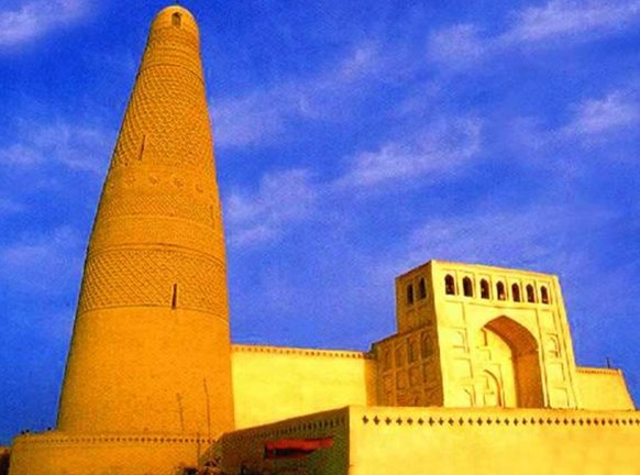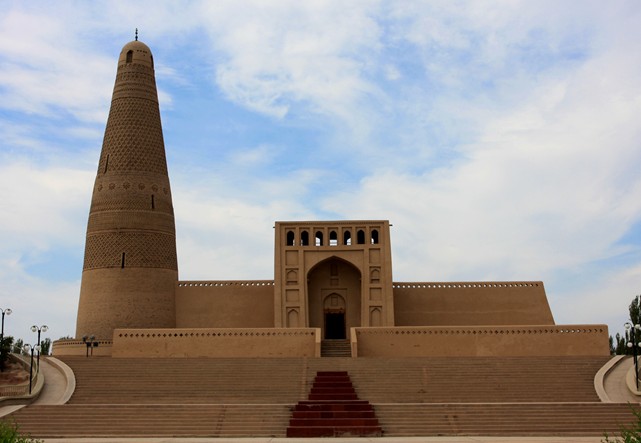 蘇公塔禮拜寺位于吐魯番市東南郊的葡萄鄉(xiāng)木納爾村,在蘇公塔景區(qū)內(nèi)。西距吐魯番2公里,東面與安樂古城相鄰。每逢肉孜節(jié)、古爾邦節(jié),穆斯林群眾,近的三人一群、五個一簇涌向禮拜寺;遠的,騎毛驢、騎自行車、坐汽車從四面八方云集這里,頒經(jīng)禮圣,祈求福佑。