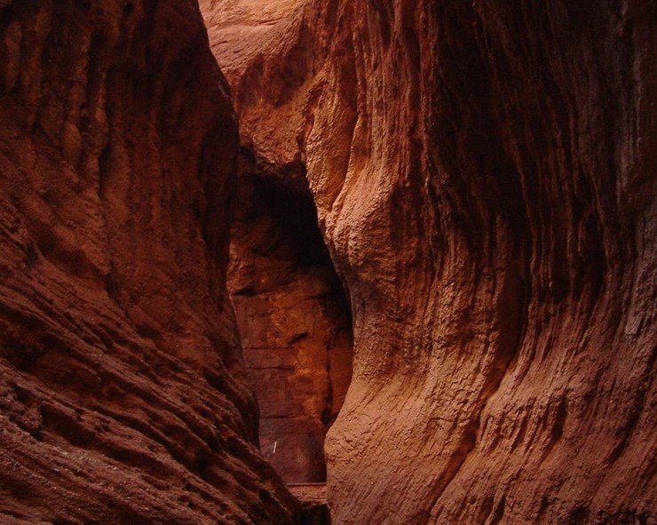 大峽谷近似呈南北弧形走向,開口處稍彎向東南,末端微向東北彎曲,由主谷和七條支谷組成,全長5000多米,谷端至谷口處自然落差200米以上,谷底最寬53米,最窄處0.4米,僅容一人低頭彎軀側身通過。谷側奇峰嶙峋,爭相崛起;峰巒疊嶂,劈地摩天,崖奇石峭,磅礴神奇;神洞秘窟,各蘊其意。谷內(nèi)蜿蜒曲折,峰回路轉;步步有景,舉目成趣;泉水叮咚,鳥叫蟬鳴,寒暑不浸,游人稱絕。整個峽谷猶如一條尾震天山頭,口飲庫河流(開口于庫車河),曲身九十九的巨龍劈山而臥,呼風喚雨,神秘莫測。更令人稱奇的是,距谷口1400米深處,高約35米的崖壁上,有一始建于盛唐時期,壁畫丹青的千佛洞遺址,就文字記載和繪畫藝術而言,在古西域地區(qū)至今已發(fā)現(xiàn)的300多座佛教石窟中絕無僅有,實屬罕見。無山不成谷,峰奇谷更幽。峽谷區(qū)域平均海拔1600米,最高山峰2048米。組成峽谷的奇峰群山由赭色的泥質沙巖構成,當?shù)鼐S吾爾語叫做“克孜利亞”,即紅色的山崖。神秘大峽谷正處在當今中國九大影視基地之一的克孜利亞勝景中。龐大的紅色山體群形成于距今1.4億年前的中生代的白堊紀,經(jīng)億萬年的風剝雨蝕,洪流沖刷,形成縱橫交錯,層疊有序的垅脊與溝槽,遠看如詩如畫,狀若“布達拉宮”,仙天瓊閣;近瞧若人似物,如夢似幻,惟妙惟肖,神韻萬端。令人有鬼斧神工,奇景天成之慨嘆。尤以谷口處的三座山體(乃頭山、麗人山、佛面山)最為壯觀。特別在夕陽斜射,朝霞映山,極目遠眺,色艷紅天。大有不是火焰山,勝似火焰山之奇感。
