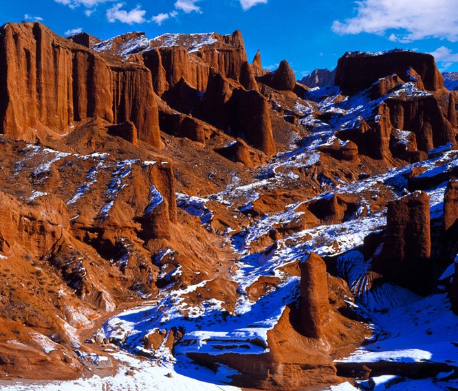 溫宿神秘大峽谷是2600萬(wàn)年前內(nèi)陸湖泊沉積的地層。由距今一億多年前的中生代的白堊紀(jì),經(jīng)過(guò)億萬(wàn)年的洪水、雨水沖刷和勁風(fēng)吹蝕共同作用而形成的。全景為巖鹽喀斯特地貌和峽谷雅丹地貌為代表的地質(zhì)遺跡和地質(zhì)景觀。目前大峽谷開(kāi)發(fā)的路段溝長(zhǎng)約10幾公里,南北向,寬處約200至300百米,狹窄處僅可一人通過(guò)。版權(quán)所有山東聊城聊之旅國(guó)際旅行社有限公司,轉(zhuǎn)載必究!走進(jìn)大峽谷,峽谷兩側(cè)因風(fēng)吹日蝕,雨水沖刷,形成了許多神奇肅穆令人嘆為觀止的傳神奇景,如:英雄谷、幽情谷、雙塔谷、紫瀾山、胡楊雙雄、萬(wàn)僧朝圣、千年古堡、千山雄風(fēng)、太空來(lái)客、驛路城池、雙塔爭(zhēng)鋒、情俑、千古壁畫(huà)、千屋萬(wàn)塔、一線云天、星河飛瀑、三心石、二意柱、巨輪飛渡、赤柱坡、雄鞭口、望心門(mén)、赤砂墩等氣勢(shì)壯觀的100多處難于用語(yǔ)言文字表達(dá)清晰的山體造型。英雄谷,男人谷,情人谷中的—生命之本和生命之源是大峽谷的鎮(zhèn)谷之寶。