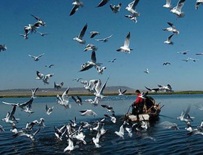 又名“布倫托海”,“福海”。位于準(zhǔn)噶爾盆地北部,福海縣城西北。“布倫托”,突厥語意為“灌木叢生”。這是新疆僅次于博斯騰湖的第二大漁業(yè)基地。由面積 165平方公里的吉力湖(小海子)和面積 730平方公里的烏倫古湖兩個水域組成。發(fā)源于阿爾泰山的烏倫古河流入其中,為該湖主要水源。湖水平均深度為八米,北岸斷崖,與額爾齊斯河僅距2.1公里,湖盆是由斷層陷落而形成的。烏倫古湖素以“戈壁大海”和鮮美“福海魚”而著稱。從克拉瑪依市出發(fā),沿公路去阿勒泰市,烏倫古湖是必經(jīng)之地。湖區(qū)水質(zhì)肥沃,浮游生物豐富,有浮游植物75種,浮游動物10多種,水生維管束植物6種,底棲生物亦多,大、小湖均屬于營養(yǎng)型湖泊。主要經(jīng)濟(jì)魚類有:貝加爾雅羅魚、河鱸、斜齒鳊、東方真鳊、圓腹雅羅魚、銀鯽、丁卡等,以前4種產(chǎn)量居多。平均年產(chǎn)量約3000噸,最多年4500噸,占新疆魚產(chǎn)總量1/3以上。由于湖面水位下降,湖濱的沼澤面積逐漸減少,蘆葦產(chǎn)量和質(zhì)量均下降;1972年沼澤面積已減少22平方公里,蘆葦高度由2~4米變?yōu)楝F(xiàn)在的0.5~1米。同時,沙堤、沙灘面積卻日漸增加。1960年以前大湖未見沙堤,1972年沙堤斷續(xù)露出水面。1980年沙堤已連續(xù),寬約400米,最高處露出水面2米。 大湖東部駱駝脖子出口處變窄變淺,正向潟湖方向發(fā)展。從環(huán)境條件看,烏倫古湖可從近20多年的惡性循環(huán)轉(zhuǎn)向今后的良性循環(huán),主要措施是從額爾齊斯河增加引水量,并從烏倫古河揚(yáng)水灌溉湖周草地及湖西南地區(qū)。這樣不僅湖水位可回復(fù),湖水加速循環(huán)后亦可淡化。從額爾齊斯河引水的規(guī)劃工作正在進(jìn)行。