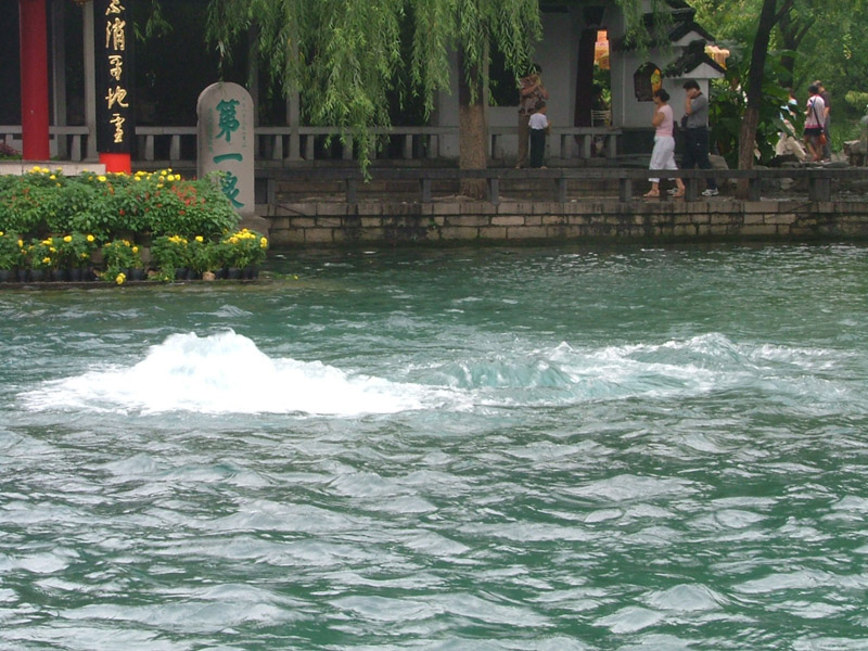 2010年9月23日,趵突泉泉水歡涌。當(dāng)日,趵突泉地下水位升至30.01米,創(chuàng)1966年以來(lái)最高水位記錄,三窟迸發(fā)的景象令中秋節(jié)假日來(lái)此賞泉的游客大呼“過(guò)癮”。