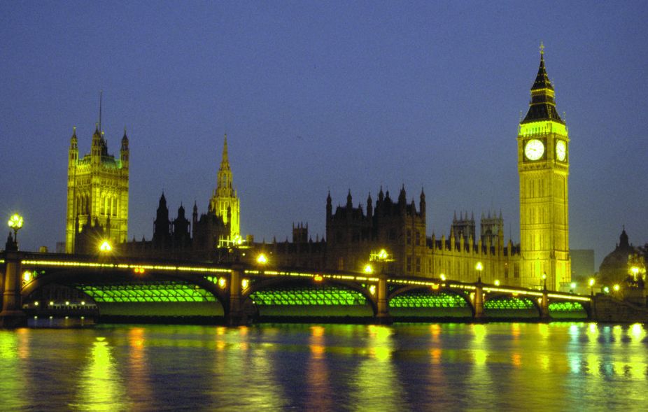 英國(guó)倫敦著名古鐘,即威斯敏斯特宮報(bào)時(shí)鐘(坐標(biāo):51°30′02.2″N, 00°07′28.6″W)英國(guó)國(guó)會(huì)會(huì)議廳附屬的鐘樓,建于1859年。安裝在西敏寺橋北議會(huì)大廈東側(cè)高95米的鐘樓上,鐘樓四面的圓形鐘盤(pán),直徑為6.7米,是倫敦的傳統(tǒng)地標(biāo)。2012年6月,英國(guó)宣布將把倫敦著名地標(biāo)“大本鐘”的鐘樓改名為“伊麗莎白塔”。