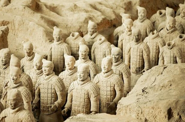 秦始皇兵馬俑是世界考古史上最偉大的發(fā)現(xiàn)之一,1978年,前法國(guó)總理希拉克參觀后說(shuō):“世界上有了七大奇跡,秦俑的發(fā)現(xiàn),可以說(shuō)是八大奇跡了。不看秦俑,不能算來(lái)過(guò)中國(guó)?!睆拇饲刭副皇澜缱u(yù)為“八大奇跡之一”目前已挖掘出3個(gè)俑坑。