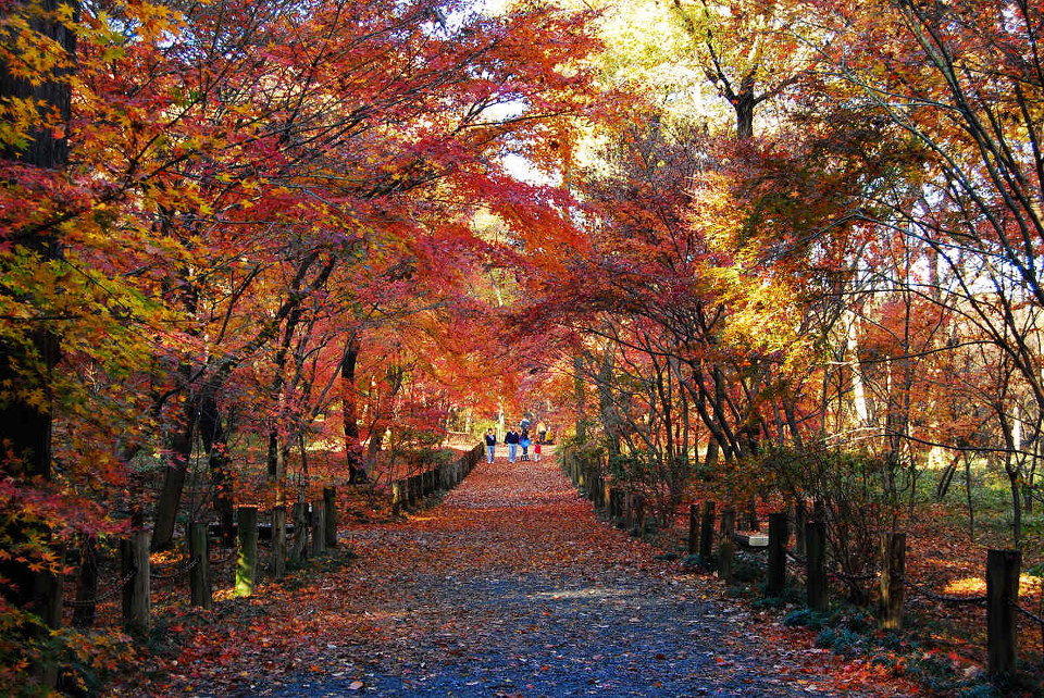 武藏丘陵森林公園位于埼玉縣的比企北丘陵。1974年7月22日開園,是日本最早的國營公園。附近地域的民眾都直接稱它為森林公園。公園面積達(dá)300萬平方米,園內(nèi)有大片的天然林,星羅棋布,點綴著41個湖沼。園內(nèi)有一條全長17公里的自行車專用道,游人可以租用自行車在林間悠游。