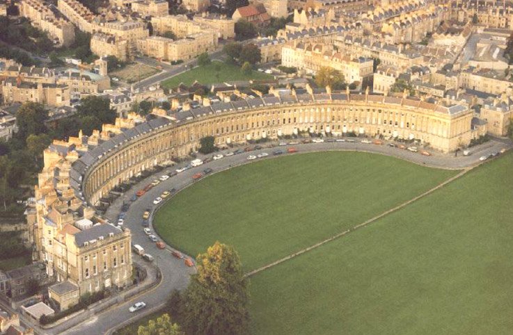 巴斯的許多古老壯觀的建筑都出自約翰•伍德父子之手,父親老約翰•伍德在18世紀(jì)設(shè)計巴斯的城市規(guī)劃時,建造了一座象征太陽的圓形廣場和一座象征月亮的皇家新月樓,兩者之間由布魯克大街連接,自此,這種以圓形或新月形廣場配置街屋的形式蔚為風(fēng)潮,對倫敦和蘇格蘭的愛丁堡的城市規(guī)劃都產(chǎn)生了很大的影響。