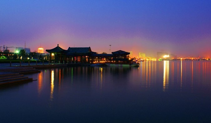 東昌湖始建于宋熙寧三年(公元1070年),在原護城河的基礎(chǔ)上經(jīng)歷代開挖而成,現(xiàn)有水域4.2平方公里,為中國江北地區(qū)罕見的大型城內(nèi)湖泊。東昌湖引黃河水為源,常年水深3-5米,湖水清澈,無任何工業(yè)污染;景色宜人,令游客流連忘返。東昌湖中心是已有千年歷史的1平方公里的正方形聊城古城。古城風(fēng)貌保存完好,以古城正中的光岳樓為中心,向四面輻射,形成東西南北四條古城區(qū)干道,其它大街小巷,也都是經(jīng)緯分明,垂直交叉,形成棋盤方格網(wǎng)狀骨架。