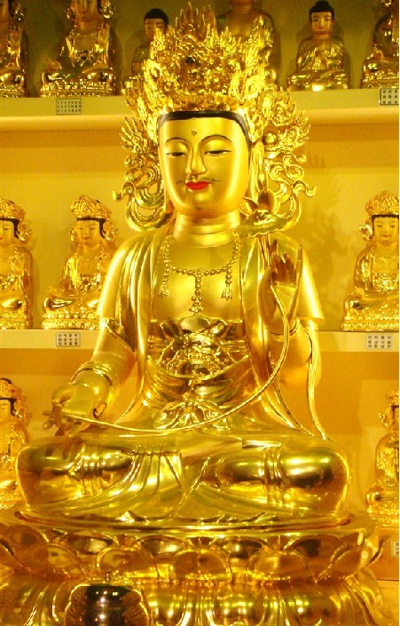 海印寺位于韓國慶尚南道陜川郡伽耶山,亦名牛頭山,是新羅時期高僧義湘大師的弟子順應(yīng)和理貞二位法師,為弘揚華嚴(yán)宗而于公元802年創(chuàng)建的道場。 華嚴(yán)宗的根本經(jīng)典是《華嚴(yán)經(jīng)》。在《華嚴(yán)經(jīng)》“賢首菩薩品”中有“海印三昧”之名。海印三昧又叫海印定、海印三摩地、大海印三昧。華嚴(yán)宗以此三昧為華嚴(yán)大經(jīng)所依之總定。佛說法前,必先入定思惟法義,以及審查根機(jī)。如說《法華》時,入無量義處三昧;說《般若》時,入等持王三昧;說《涅盤》時,入不動三昧。華嚴(yán)經(jīng)七處八會中,每一會均有別定,即第一會入如來藏三昧,乃至第八會入師子奮迅三昧。海印三昧即此七處八會所依之總定。海印者,約喻以立名,即以大海風(fēng)止波靜水澄清時,天際萬象巨細(xì)無不印現(xiàn)海面,譬喻佛陀之心中,識浪不生,湛然澄清,至明至靜,森羅萬象一時印現(xiàn),三世一切之法皆悉炳然俱現(xiàn)。華嚴(yán)大經(jīng)即依此定中所印現(xiàn)之萬有而如是說。海印寺之名即取意于此。
