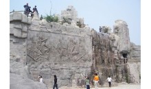 大觀峰是山東泰安的著名風(fēng)景名勝之一,位于玉皇頂盤路東側(cè),大觀峰削崖為碑,布滿了歷代題勒,其中最著名的是唐玄宗于開元十三年(725)登封泰山時(shí)御制御書的《紀(jì)泰山銘》,俗稱“唐摩崖”。摩崖高13.3米,寬5.5米,全文1000字,書體為唐隸。文辭典雅,書法遒勁,頗具盛唐風(fēng)格。明代文學(xué)家王世貞評(píng)價(jià)說:“穹崖造天銘書,若鸞飛舞于煙云之表,為之色飛。”