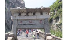 升仙坊位于山東省泰山中路緊十八盤的起始處,為兩柱單門式石坊,額題楷書“升仙坊”。此處山勢(shì)陡峻,懸崖峭壁,上臨岱頂天庭,咫尺仙境,似有飄然升仙的意境,故名“升仙坊”。游人至此小憩,每每浮想聯(lián)翩。回視山下,常有騰身云霄之感,舉首仰望,南天門近在眼前,奮力攀登,岱頂在望。 升仙坊位于南天門下。全石雙柱單門式,寬2.82米,通高4.5米,建于雙層方 石基上?;L(zhǎng)1.82米,寬0.64米,高0.5米。柱方形,下施滾墩石,獸頭石鼓狀。