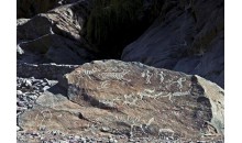 克爾堿巖畫位于托克遜縣庫加依鎮(zhèn)境內,南距鎮(zhèn)政府約4.5千米,巖畫散布在鎮(zhèn)北的克爾堿 溝兩岸,畫面內容主要有:羊、牧羊人、鹿、狗、駱駝以及狩獵、放牧等場面。其中一幅水系圖令人注目。巖畫基巖均為侏羅紀粗砂巖。相傳有位神匠途經(jīng)此地,眼見四周環(huán)境優(yōu)美,于是整日靜坐在河岸欣賞,后將四周景色逐一刻畫于巖壁上,形成人們今天看到的巖畫。