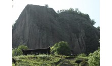 隱屏峰位于武夷山九曲溪中段,隱藏在午林淵深處。云霧迷朦,峭拔千尋,直上直下,方正如屏,故名。坐筏觀山,只能望見它突出林端的半壁,唯有登上溪南的晚對(duì)峰,才能看到它的全貌。 隱屏峰由茶洞從峰南壁攀登即可登臨,因峰巒方正如屏,故名。峰西有一尖銳直上且半腰有橫裂三痕的奇石即為接筍峰。隱屏蹬道極為險(xiǎn)峻,號(hào)為“雞胸”、“龍脊”,原為明代道士汪三寶、劉端陽所開鑿。峰頂有玄元道院、清微道院遺址,還有仙凡界、仙奕亭、南溟靖諸勝,古代號(hào)為“隱屏真境”。峰南的平林渡畔有朱熹構(gòu)筑的“武夷精舍”遺跡。