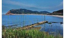 園中的主要建筑為一座高20余米的中西結(jié)合式的“月牙亭”、矗立在峭壁之上的“觀瀾亭”和長約千米的長廊。長廊前,還有一處用石球裝飾鋪筑的百米“石毯”,行之其上有“步踏珍珠”之感。最有情致的是月牙灣的球石,可以說是一個珠光寶氣的球石世界,潔白的如美玉,晶瑩的賽琥珀,無論你在什么地方捧起,都會一顆也舍不得丟下。黨和國家領(lǐng)導(dǎo)人多次來到月牙灣,都親自為月牙灣題字留詩。