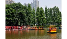 廣州東山湖公園建于1958年,1959年5月1日正式向游人開放,公園面積33.114公頃,其中陸地面積12.2公頃,水體面積20.914公頃。是區(qū)級(jí)綜合性文化休息公園。園內(nèi)山水相依,湖水清澈見底。湖中有5個(gè)半島和 1個(gè)孤島,島間以九曲橋、五孔橋、拱橋相連,與各具特色的亭、廊、榭、閣、花架連為一體。該園以紫荊、柳堤為主景,有喬灌木110種,1萬多株。因此,每當(dāng)春日,景色十分迷人。