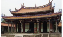 孔廟位于大同區(qū)大龍街,創(chuàng)建于清光緒元年(公元一八七五年)臺(tái)灣北部設(shè)置臺(tái)北府,當(dāng)府城于光緒五年(公元一八七九年)動(dòng)工,隨即在城內(nèi)南門內(nèi)建造文武廟,兩座廟皆朝南,文廟在左,武廟在右,即是臺(tái)北府的孔廟。 創(chuàng)建期間,在光緒二十年(公元一八九四年)中日甲午戰(zhàn)爭(zhēng)時(shí)間,發(fā)生了臺(tái)灣割讓給日本,第二年日軍進(jìn)占臺(tái)灣,開始了日據(jù)時(shí)期的年代。至光緒三十三年(公元一九0七年)日本人為建立日語(yǔ)學(xué)校,故將孔廟拆除,并在此建立了第一高等女子學(xué)校.