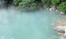 地熱谷又稱地獄谷,位于新北投公園旁,屬北投五十六號公園,占地六千八百平方公尺,為溫泉之源頭處,已經(jīng)有二百多年的歷史。