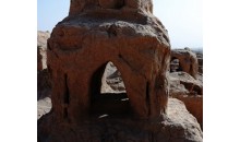 這是一片據(jù)傳已有數(shù)百年歷史的維吾爾古墓群。起伏錯(cuò)落的墓葬,綿延數(shù)平方公里。既有土垣環(huán)列的家族墓園,也有形單影只的孤冢墳丘;既有高大氣派的墓門拱拜,而更多的是排列有序的平民墳塋。在這里,游人可更多地了解到維吾爾族葬喪習(xí)俗,還可通過雕飾精巧造型別致的墓門、墓室外,進(jìn)一步了解到維吾爾族建筑、繪畫等藝術(shù)風(fēng)格。