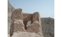 遺址位于新疆若羌縣城西南約40余公里處,在一座海拔約3000米的峭壁南邊的山頂上,只有唯一的一條長約500米左右小道沿著山脊的自然走向通往城堡。山脊兩側(cè)的懸崖深約100米,兩邊有鷹嘴石、一線天等自然景觀,怪石林立,犬牙交錯(cuò),地勢十分險(xiǎn)峻,頗有一夫當(dāng)關(guān)、萬夫莫開之勢。山頂經(jīng)人工削平,四周有石塊壘砌的圍墻,圍墻周長300米,一座城門面北與通過山脊而來的小道相接。