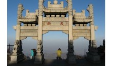 中天門建于清,為兩柱單門式石坊。泰山古時(shí)多虎,古人在坊北建廟祀黑虎神,現(xiàn)廟內(nèi)塑財(cái)神趙公元帥執(zhí)鞭跨虎,東為仿古茶樓,西南為中溪賓館,西北為中天門索道站。中天門峻嶺闊谷,樓閣簇?fù)?。東有中溪山突兀俏麗,可觀日出,望晚霞;西有鳳凰嶺蜿蜓伸展,可遠(yuǎn)眺傲徠雄姿,俯視城廓新貌。佇立坊下,北瞻巍巍岱峰,眾山拱立,林茂泉飛,纜車凌空,天然成畫(huà)。