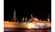 “海上城市”原名“巴西瑪魯”,是日本一艘國(guó)際遠(yuǎn)航客貨輪,已有四五十年的歷史,船長(zhǎng) 156米、寬19.6米,共有七層,排水量達(dá)1.7萬(wàn)噸。1954年下水,1951年載中日友好青年代表團(tuán)訪(fǎng)問(wèn)中國(guó),后改為旅游船,停泊在日本旅游勝地鳥(niǎo)羽市港灣,1997年由珠海華瑩集團(tuán)引進(jìn),次年落戶(hù)于湛江,與雄偉的南海艦隊(duì)軍港隔海相望。