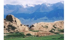 拉甫去克古城位于哈密市五堡鄉(xiāng)四堡村內(nèi),東距哈密市65公里。為漢─唐時代城址。地理坐標:東經(jīng)92°54′28″,北緯42°56′16″,海拔614.2米。1957年被列為新疆維吾爾自治區(qū)文物保護單位。古城頗具規(guī)模,有南北二城,平面呈“呂”字形。由于白楊河水自兩城間流過,致使古城遭受破壞。城內(nèi)已被辟為村民居住地或果園,原有建筑大多被毀。在古城內(nèi)外發(fā)現(xiàn)的陶片主要是夾砂紅、灰陶。多為輪制,火候較高。紋飾以花邊刻線和附加堆紋為主。