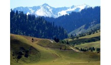 由新疆哈密市北行翻過天山,就到了口門子。這里是哈密、伊吾、巴里坤三條公路的連接點,曾是古絲道上的重要驛站,也是古代軍事上的險關(guān)要隘??陂T子是一個天山峽口,三面崇山峻嶺,林海蒼茫。一出峽口,則是開闊的草原,綠野綿延。這里氣象多變,“六月雪”并不稀罕,冬季更是一派“林海雪原”的北國風光。這里建有高原冰場,是訓練冰上運動員的理想場地。