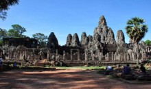 巴戎廟 位于柬埔寨暹粒,吳哥城內(nèi)最為出名的要數(shù)巴戎廟中的佛塔了,巴戎廟位于吳哥城的中心位置,巴戎廟是由一組共49座小寶塔圍繞中央尖塔構(gòu)成的建筑群,這些塔在佛語(yǔ)里又被稱做浮屠,每一座塔的四面都雕刻著巨大的佛面,也正因?yàn)槿绱耍@些塔又被稱作佛面塔,上面的佛被稱為四面佛。
