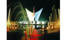 位于煙臺經(jīng)濟(jì)技術(shù)開發(fā)區(qū)金沙灘海濱公園正門處,為一圓形階梯狀構(gòu)筑,整個廣場噴泉灑珠,青草滴翠,花紅樹綠,烏囀鶯啼,使人仿佛置身天上的街市,神奇無比。北部最高點(diǎn)矗立著一組風(fēng)帆群雕,在碧海藍(lán)天間顯現(xiàn)出勃勃生機(jī),象征著開發(fā)區(qū)在改革開放的大潮中乘風(fēng)破浪,一帆風(fēng)順;入夜,這里華燈齊放,燦爛輝煌,風(fēng)帆通體發(fā)光,昂揚(yáng)向上,寓意著光輝的前景和時代的精神。