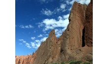 維吾爾語“克孜利亞”是“紅色的山崖”之意。神秘的“天山大峽谷”是天山支脈克孜利亞山中的一條峽谷,紅褐色巖石經(jīng)過大自然億萬年的風(fēng)刻雨蝕之下,才形成由現(xiàn)在“天山大峽谷”?!疤焐酱髰{谷”紅褐色的山體群直插云天,在陽光照射下,猶如一簇簇燃燒的火焰?!疤焐酱髰{谷”的迷人之處,不僅僅在于它的雄奇、險峻,而在于它的幽深、寧靜和神秘。
