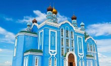 圣瓦西里大教堂(華西里·伯拉仁內(nèi)教堂)位于俄羅斯首都莫斯科市中心的紅場南端,緊傍克里姆林宮。由俄羅斯建筑師巴爾馬和波斯特尼克根據(jù)沙皇和伊凡大公的命令主持修建,于1560年建成。教堂的名字根據(jù)當(dāng)時伊凡大帝非常信賴的一位修道士瓦西里的名字而取。中央的塔高65米,共有九個金色洋蔥頭狀的教堂頂。這九個教堂頂不是一開始就有,而是后來分別加上去的