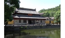 阿育王寺是我國(guó)現(xiàn)存唯一以阿育王命名的千年古剎。其地在今寧波市東20公里,鄞縣五鄉(xiāng)鎮(zhèn)寶幢。寺之座落方位,在鄮山分支育王山之西麓。面對(duì)玉幾山,左界育王嶺,右是赤瑩山峽谷。三山擁處,吉林參天,修竹蔽日。西望古剎,寺在山奧之底,南而遠(yuǎn)眺,俱在峰巒之中,有世外桃源之感。加之四周翠崗蜿蜒,群陵起伏,稱之為“六殊勝八吉樣地”實(shí)非虛言。